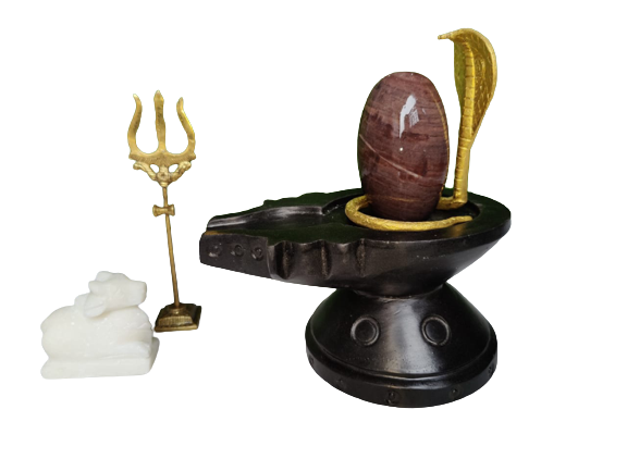 Black Narmada Jaldhari Shivling With Damru Nag and Trishul