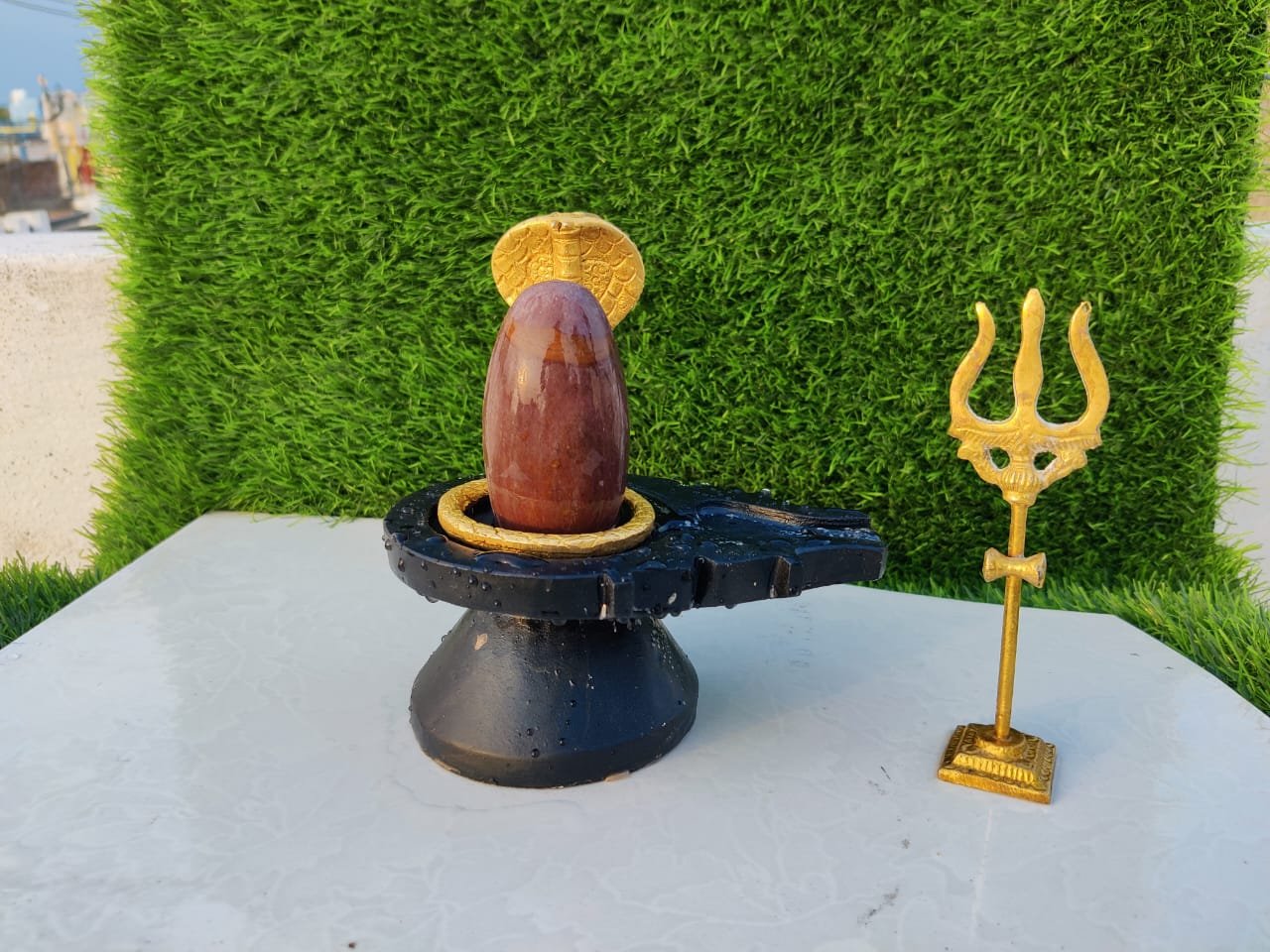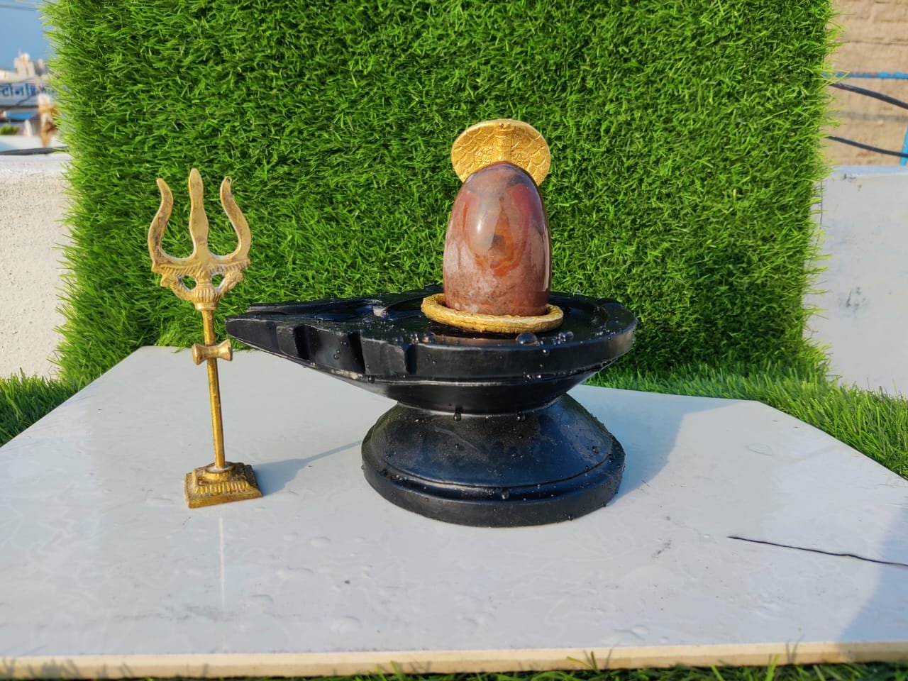 Black Narmada Jaldhari Shivling With Damru Nag and Trishul